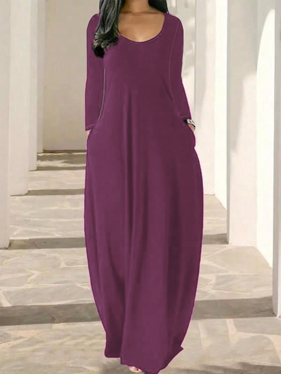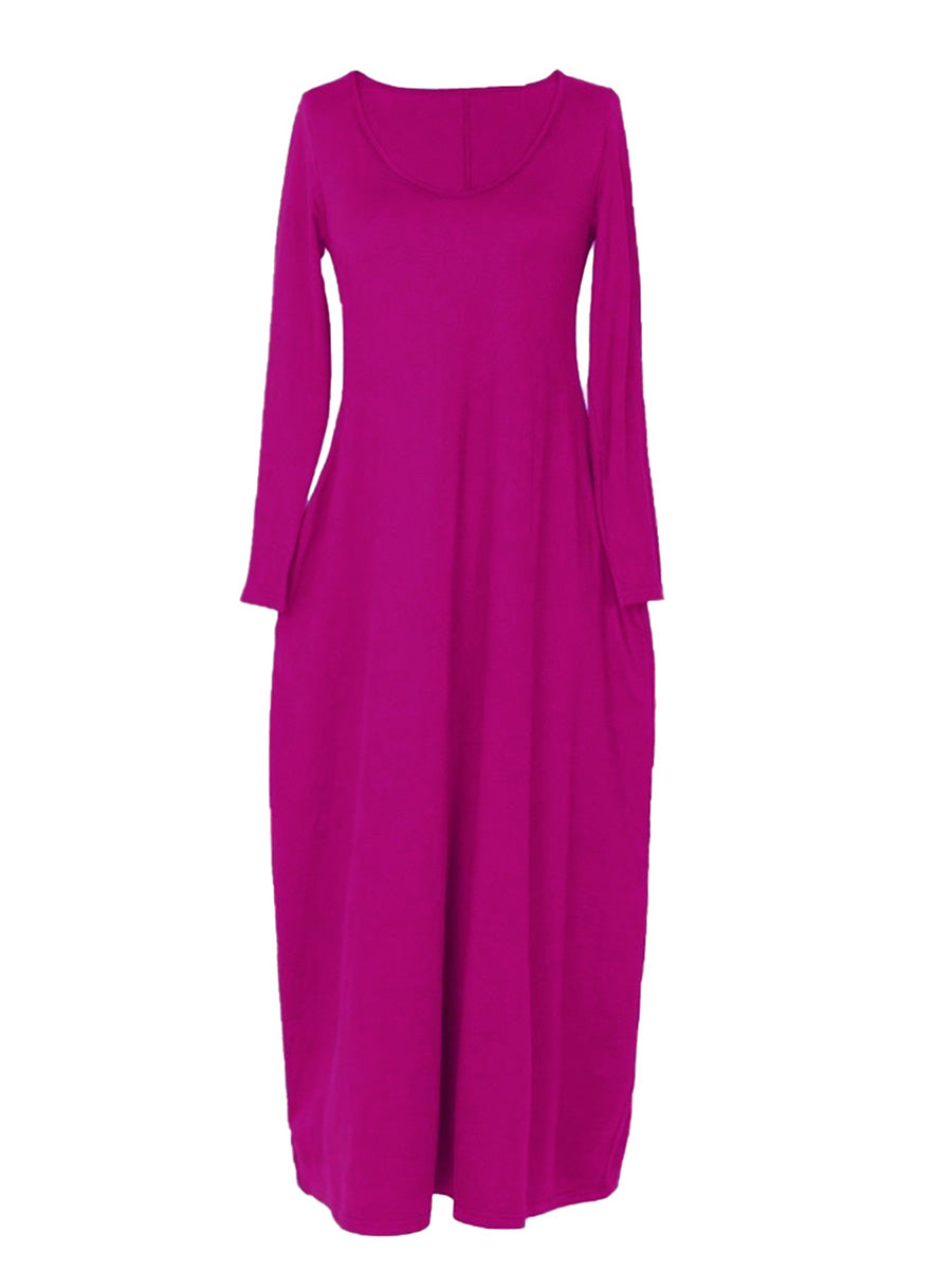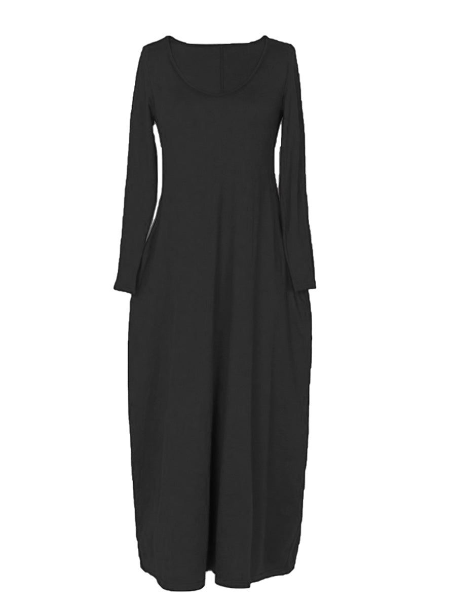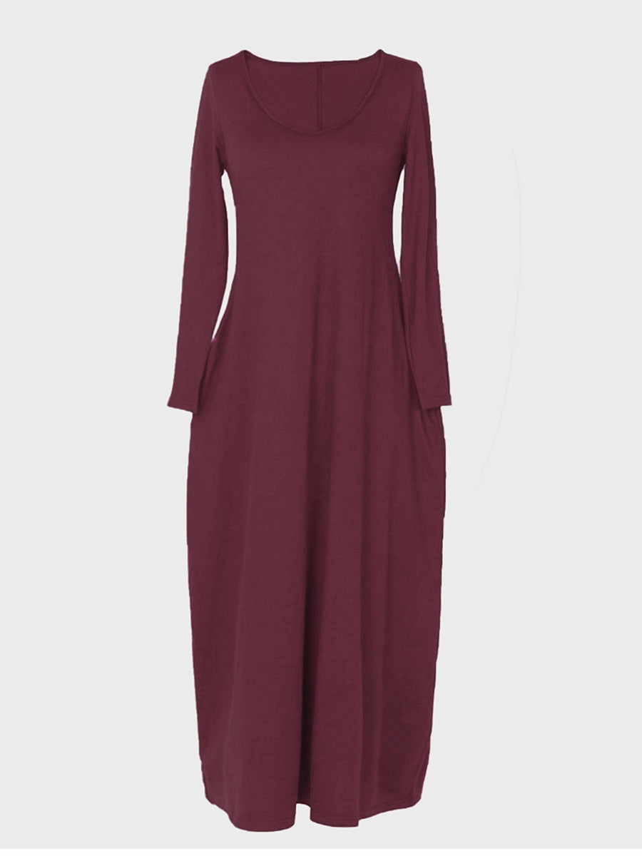 Effortless elegance meets everyday comfort in this versatile long-sleeved dress. The relaxed, loose-fitting silhouette flatters all body types while the round neckline offers timeless appeal. Practical side pockets add functionality without compromising style—perfect for keeping essentials close. Ideal for casual outings, work, or layering through seasons, this wardrobe staple transitions seamlessly from day to night. Soft, breathable fabric ensures all-day wearability. A must-have piece that combines understated sophistication with practical design.