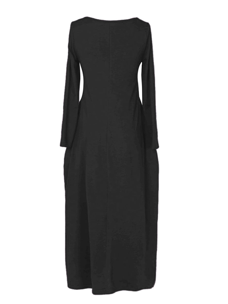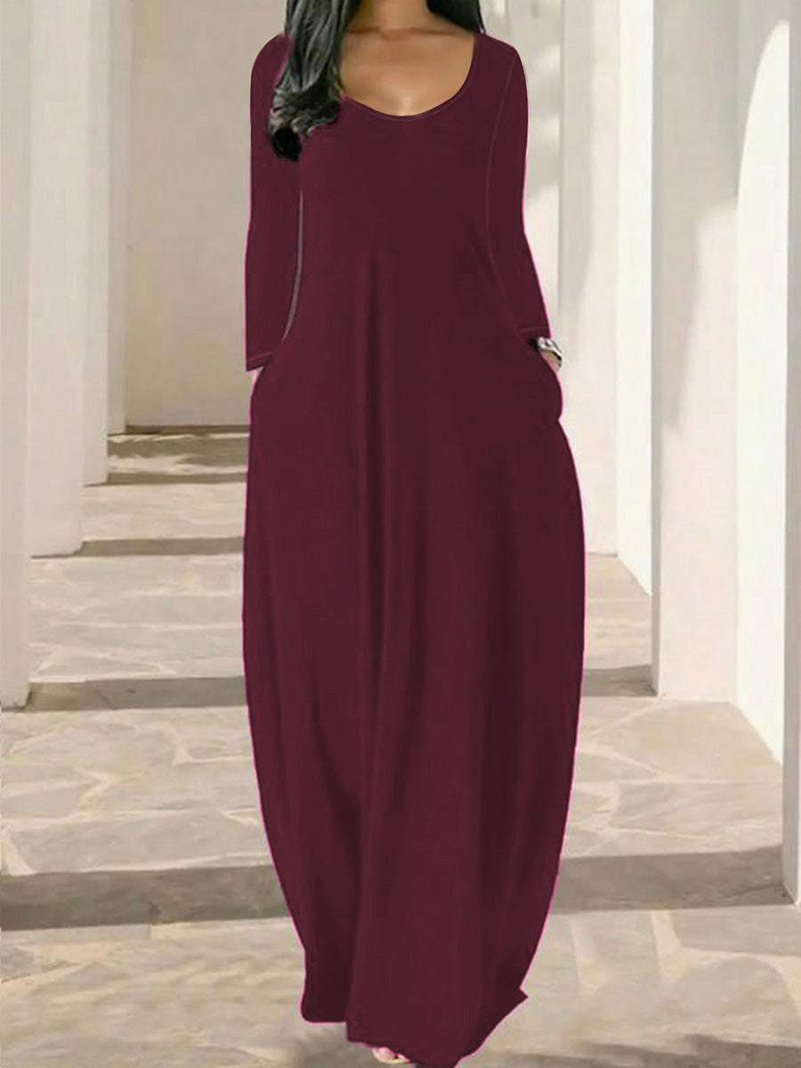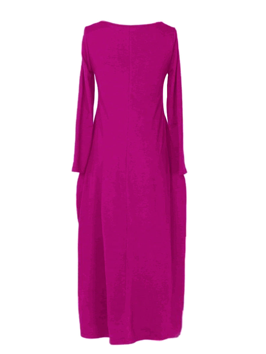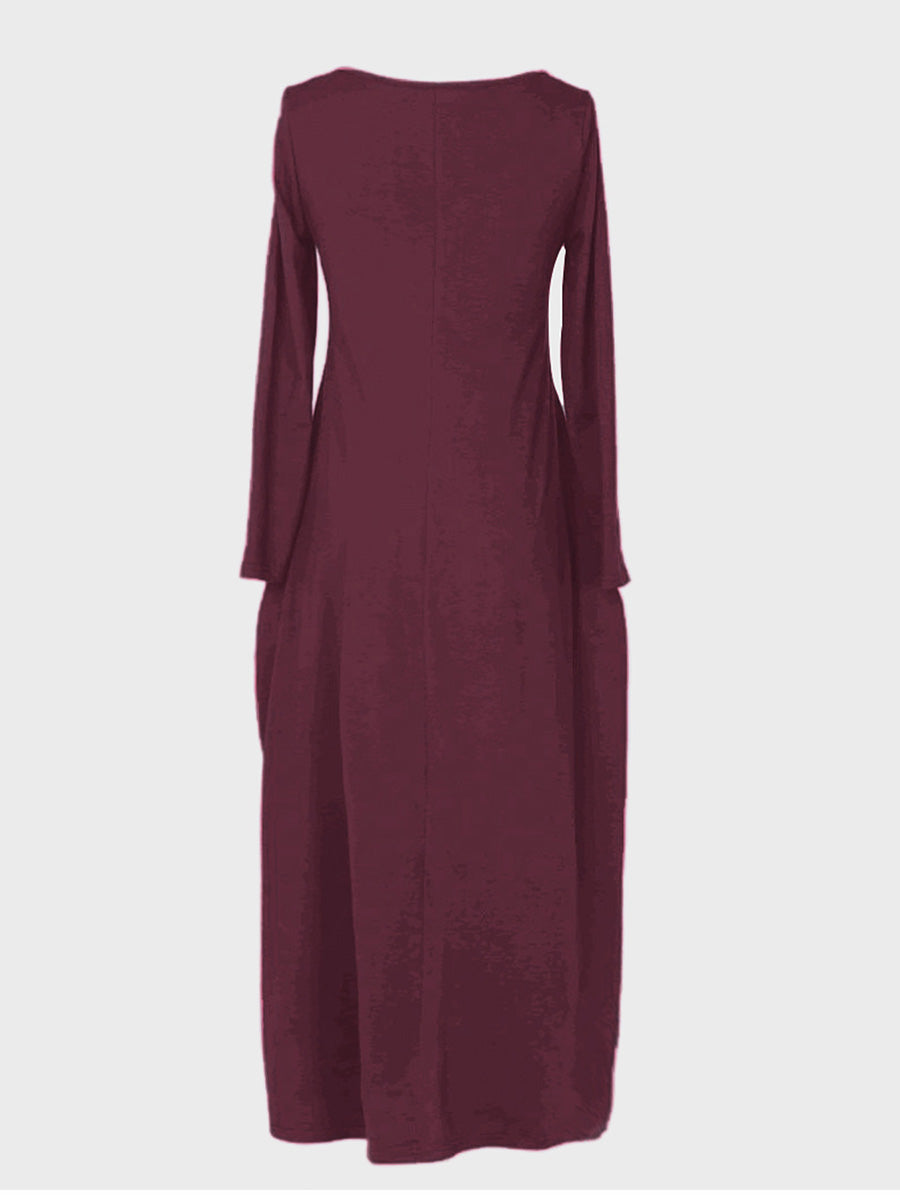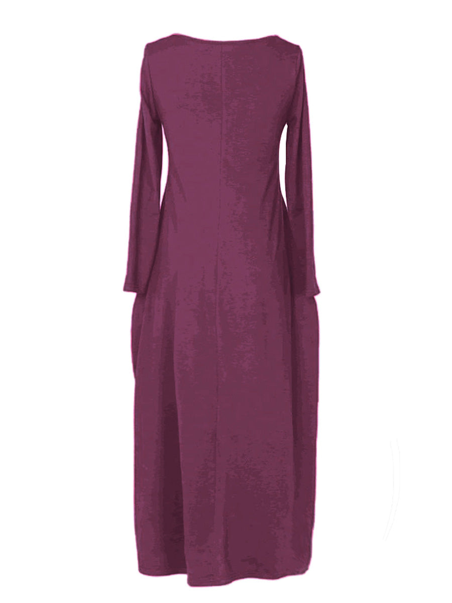 Effortless elegance meets everyday comfort in this versatile long-sleeved dress. The relaxed, loose-fitting silhouette flatters all body types while the round neckline offers timeless appeal. Practical side pockets add functionality without compromising style—perfect for keeping essentials close. Ideal for casual outings, work, or layering through seasons, this wardrobe staple transitions seamlessly from day to night. Soft, breathable fabric ensures all-day wearability. A must-have piece that combines understated sophistication with practical design.