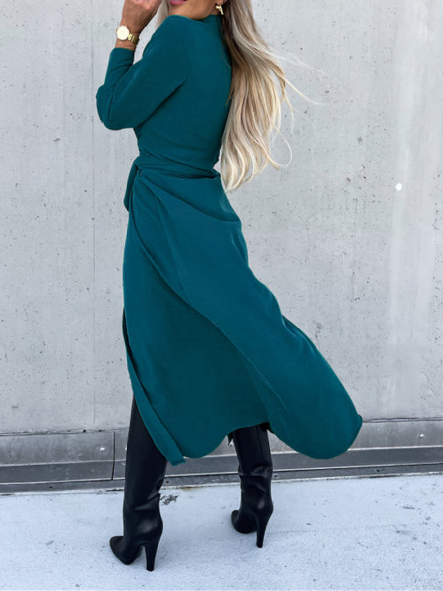 Button-front belted long-sleeve shirt dress in premium velvet or structured fabric, designed for effortless elegance. The classic shirt silhouette pairs with a cinched waist belt to define your figure, while full-length sleeves and a polished button front deliver timeless sophistication. Perfect for holiday gatherings, evening events, or elevated everyday wear. Layer over turtlenecks or wear solo for versatile styling that transitions seamlessly from office to occasion.