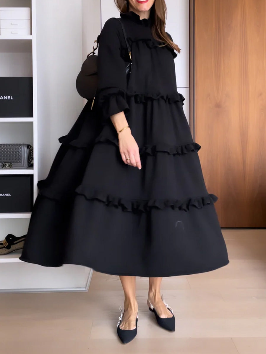 Turn up the sweetness with our Dress in Black! Made from cozy sweatshirt fabric, this dress features charming ruffles and soft cotton for ultimate comfort. A perfect combination for a stylish yet casual look. (Warning: this dress may cause excessive twirling and compliments!)The length of the dress is 123 cm. Dress Black has side pockets.