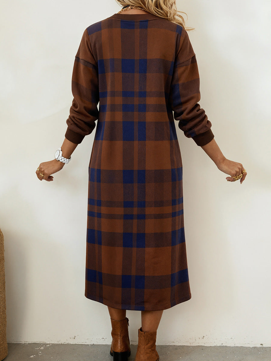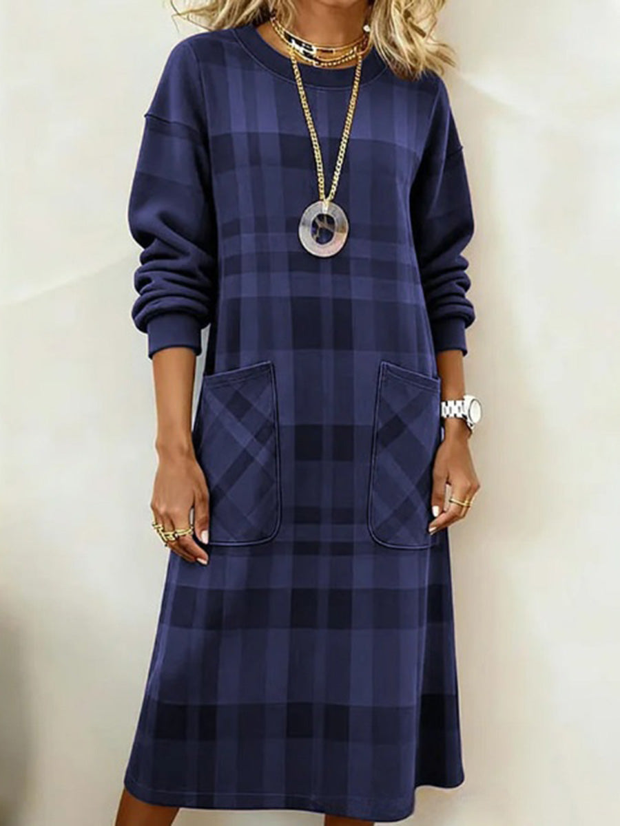 Timeless plaid elegance meets everyday versatility in this long-sleeve dress. Crafted with a refined print that transitions seamlessly from office to evening, the structured silhouette flatters while the extended sleeves provide sophisticated coverage. Perfect for layering or wearing solo, this wardrobe essential delivers polished style season after season. A premium piece that anchors any collection with understated luxury and enduring appeal.