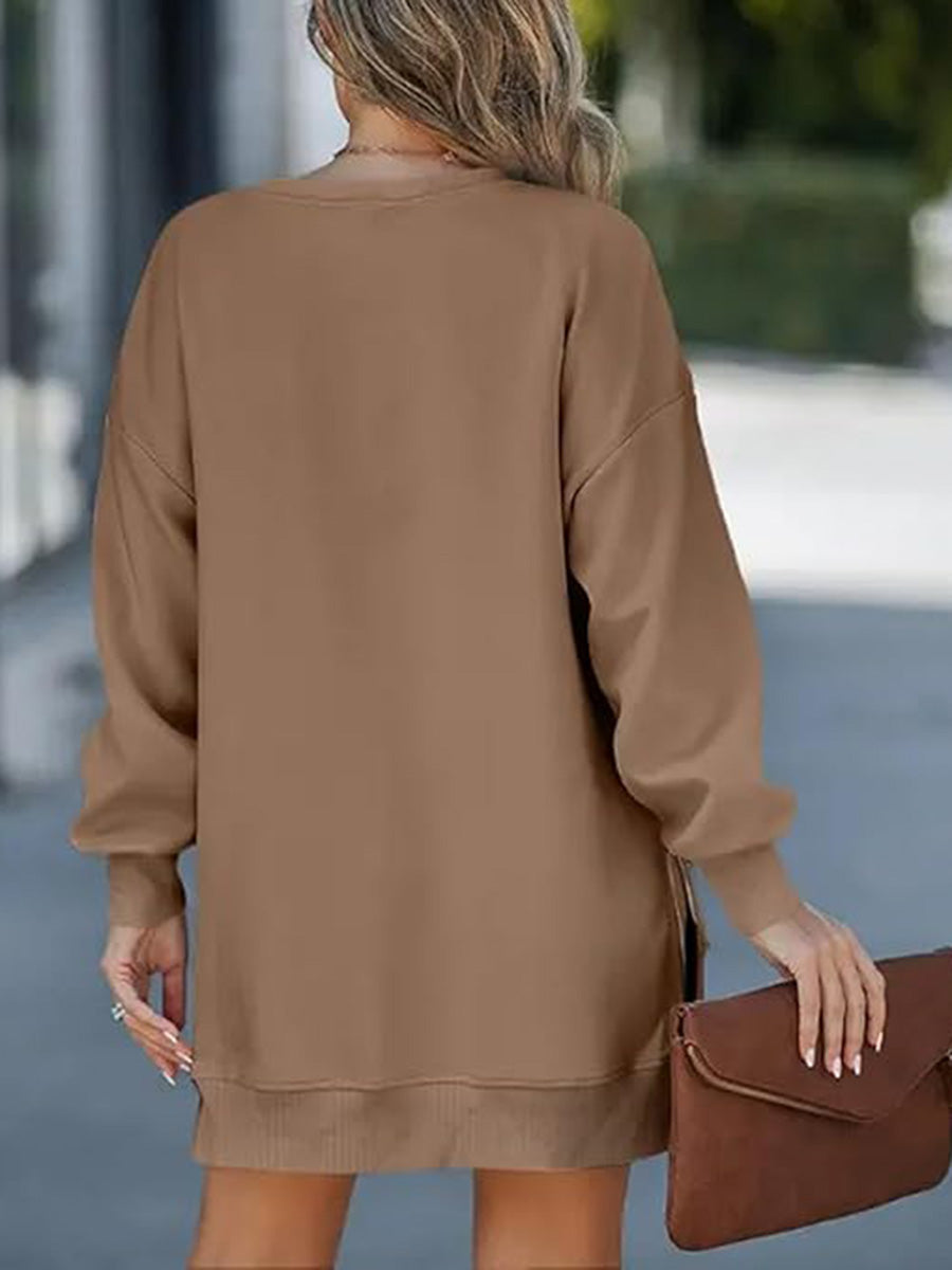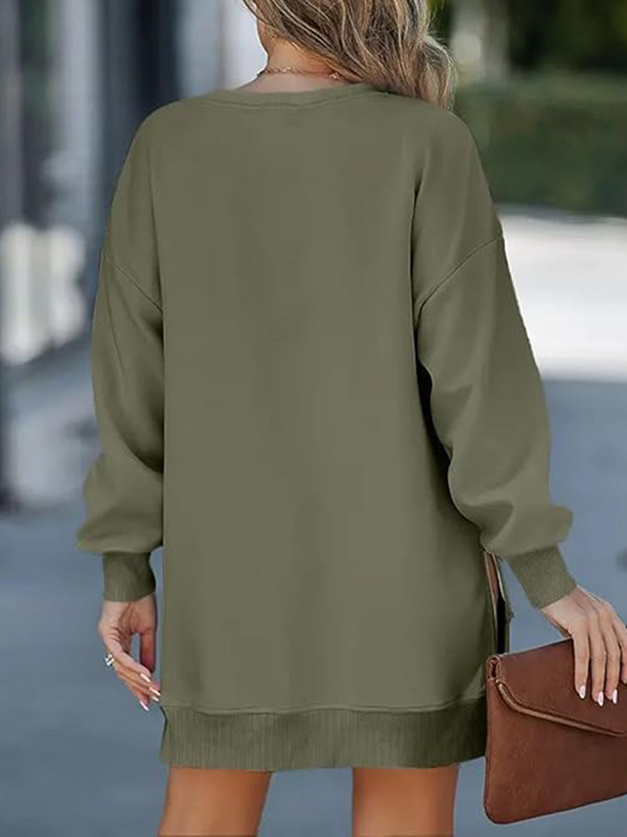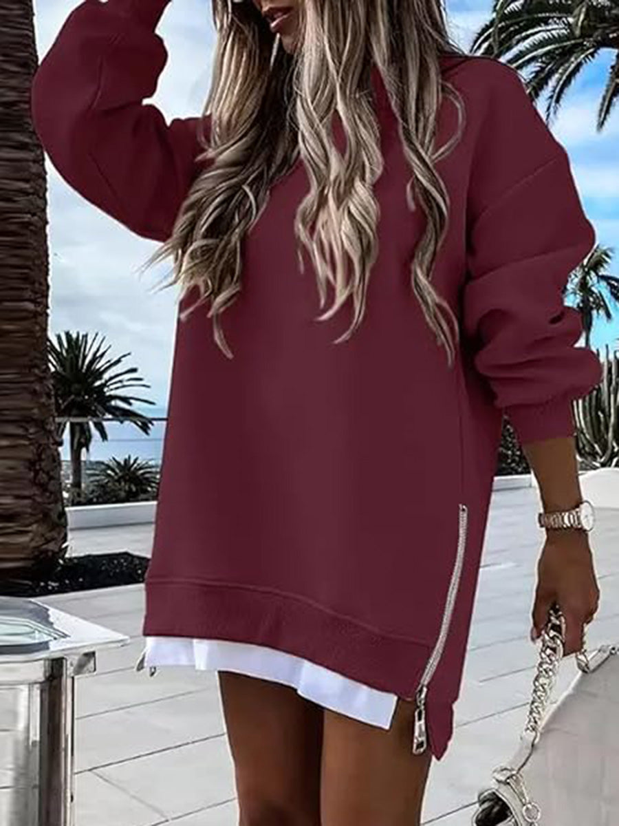 - Casual Patchwork Side-Zip Sweatshirt Dress