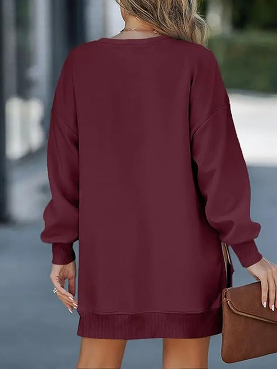 Custom-Printed Crew Neck Long-Sleeve Dress