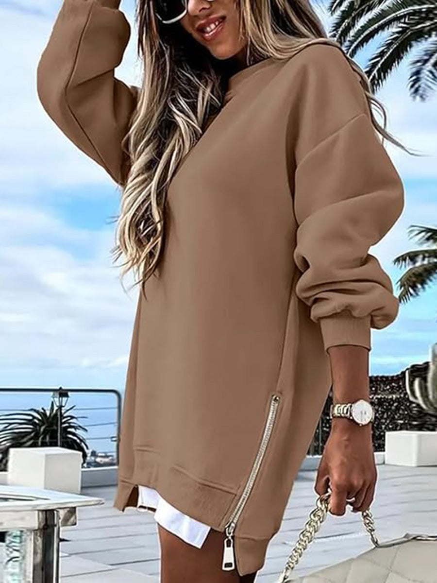 Effortlessly blend comfort and style with this Casual Patchwork Side-Zip Sweatshirt Dress. The mixed-fabric design creates visual interest while the convenient side zip allows easy layering and adjustable fit. Perfect for casual outings or relaxed evenings, this piece transitions seamlessly from day to night. The oversized silhouette offers cozy warmth without sacrificing contemporary appeal, making it an essential addition to any modern wardrobe.