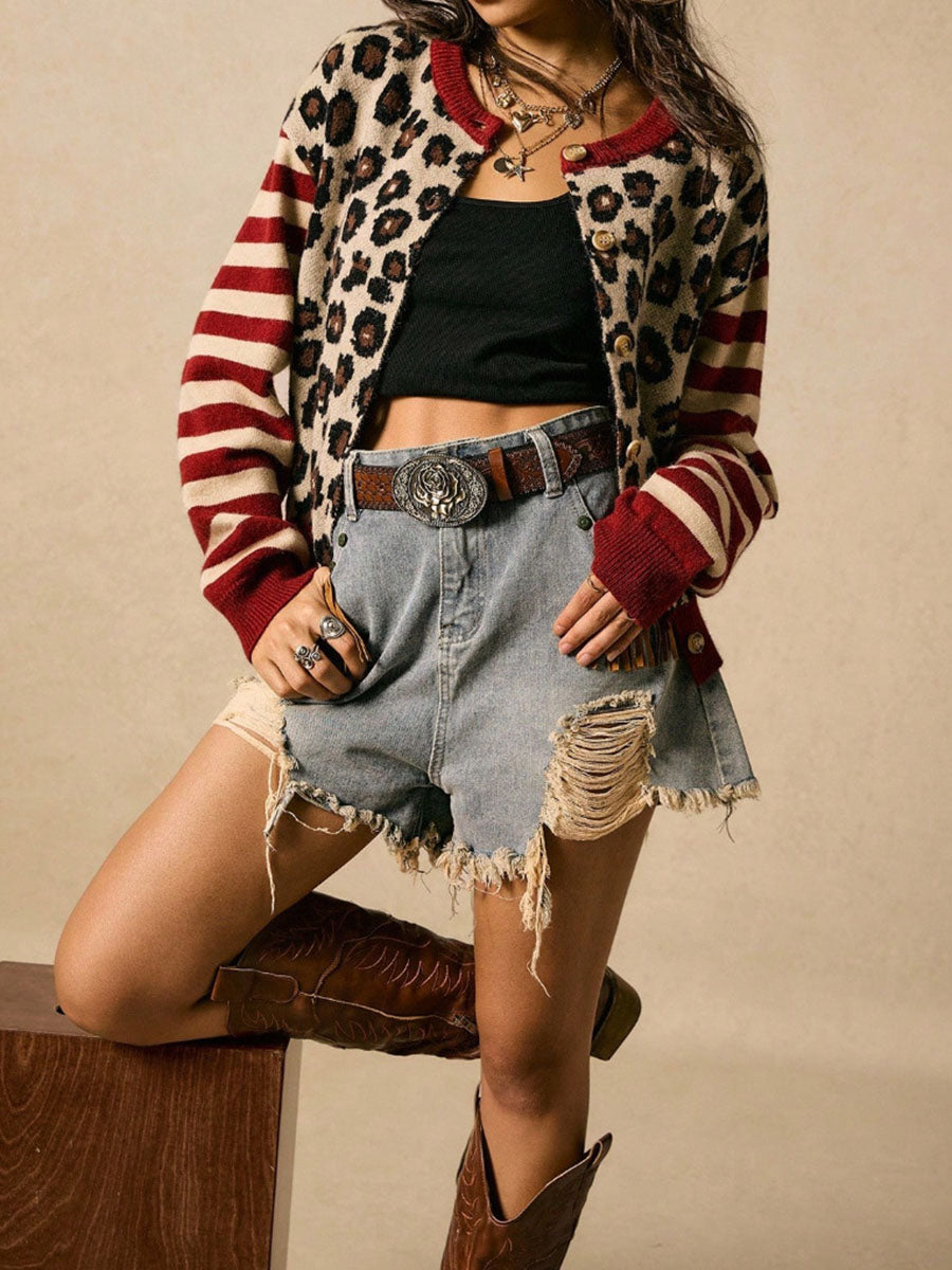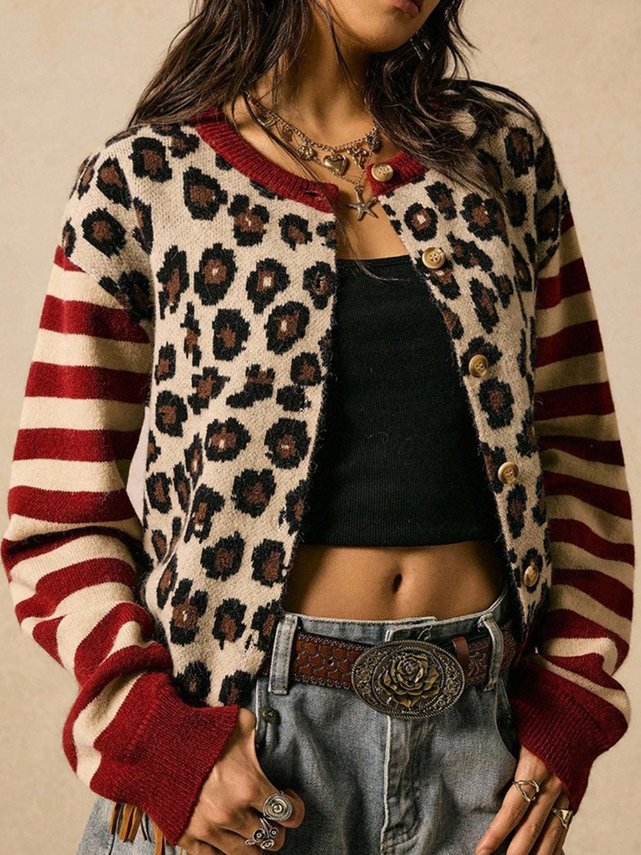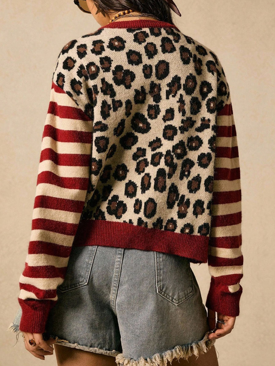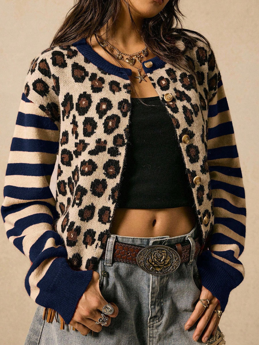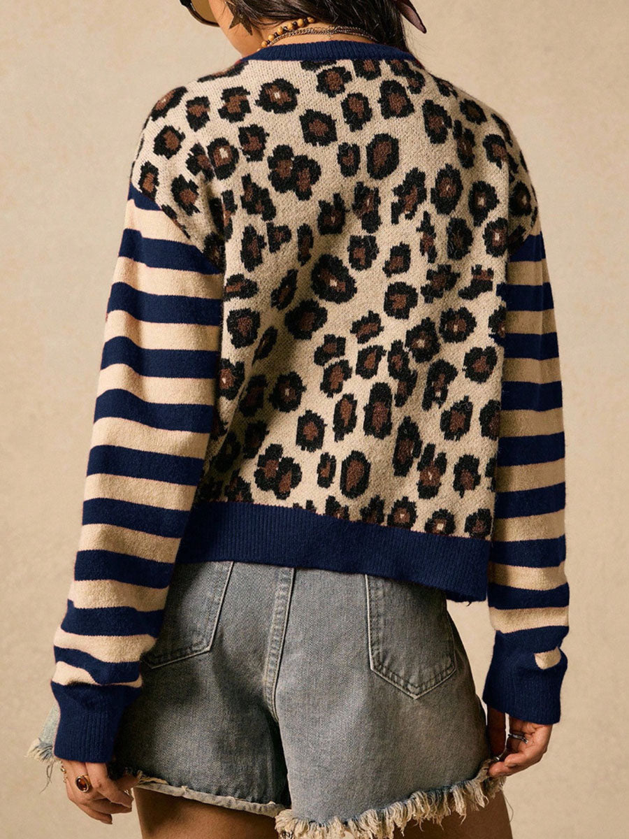 Elevate your wardrobe with this striking Chic Leopard Contrast Knit Cardigan—a versatile piece that seamlessly transitions from casual to polished. The bold leopard pattern paired with contrasting color blocks creates an eye-catching aesthetic that works beautifully over tees, dresses, or layered looks. Crafted for comfort and style, this cardigan offers the perfect balance of statement-making design and everyday wearability. Whether you're dressing up for brunch or keeping it relaxed on weekends, this piece instantly adds personality and sophistication to any outfit.