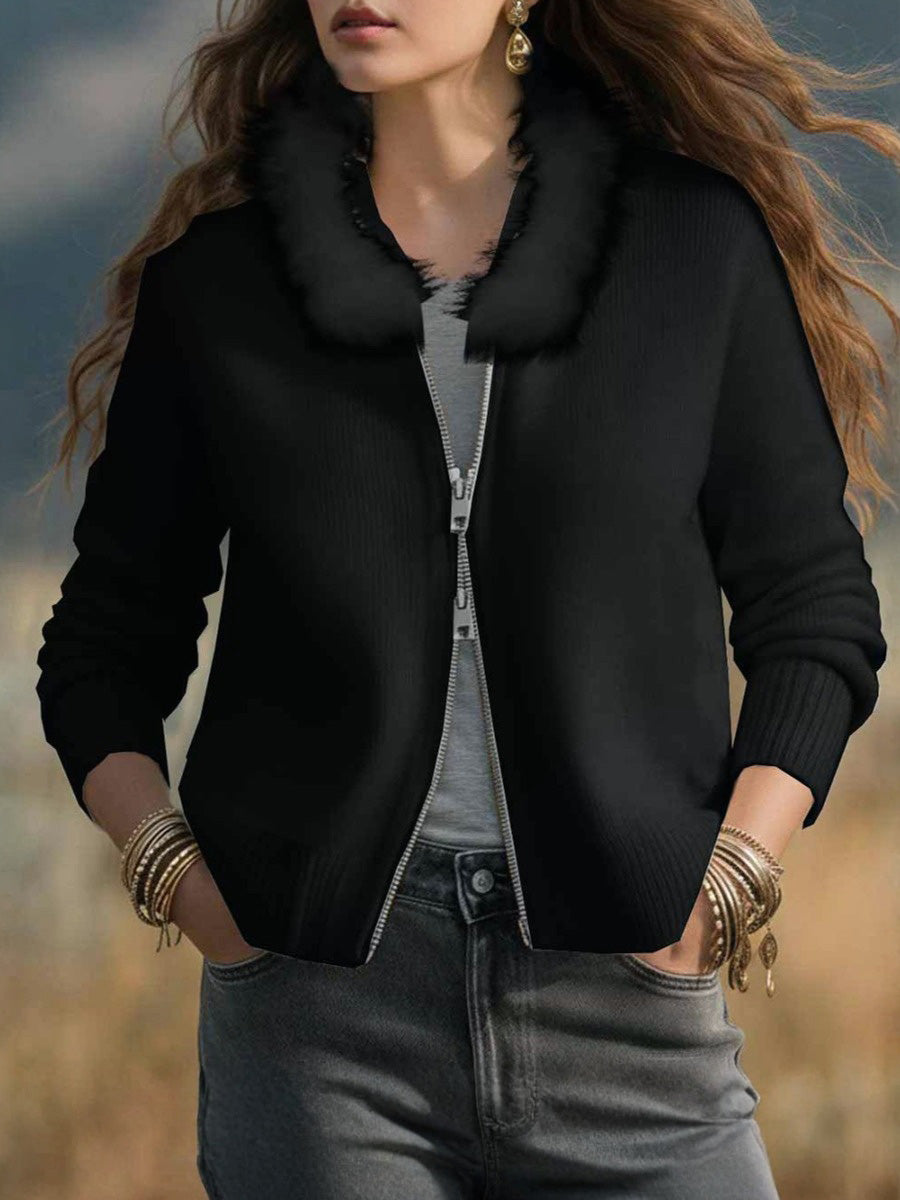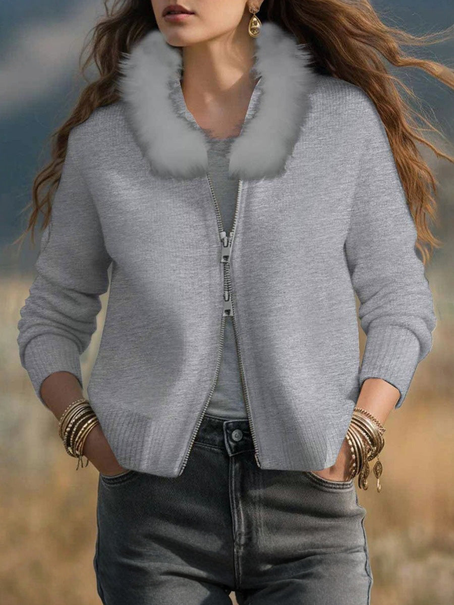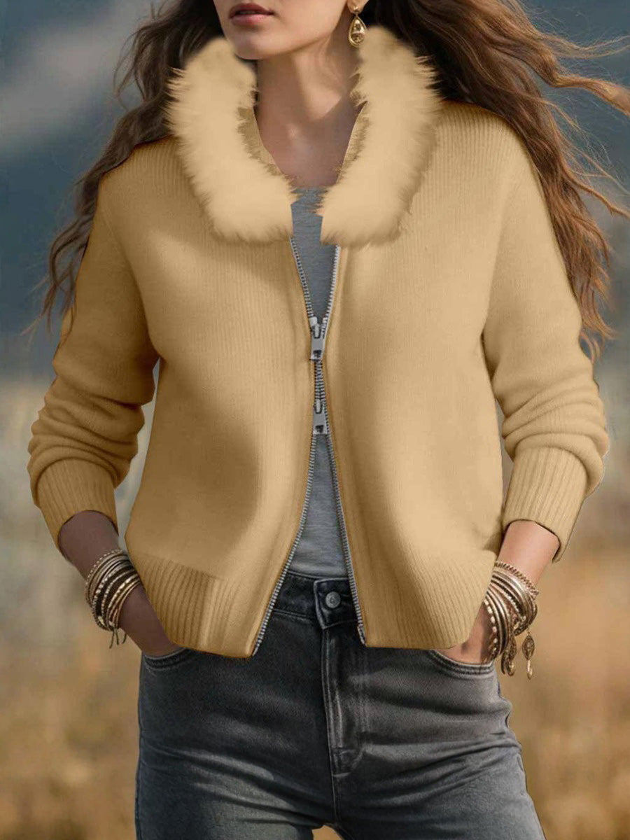- Christmas Fur-Collar Knit Cardigan